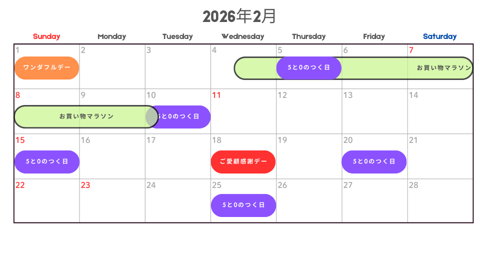 2026年2月の中でも、特にお得に買い物ができる日を解説します。