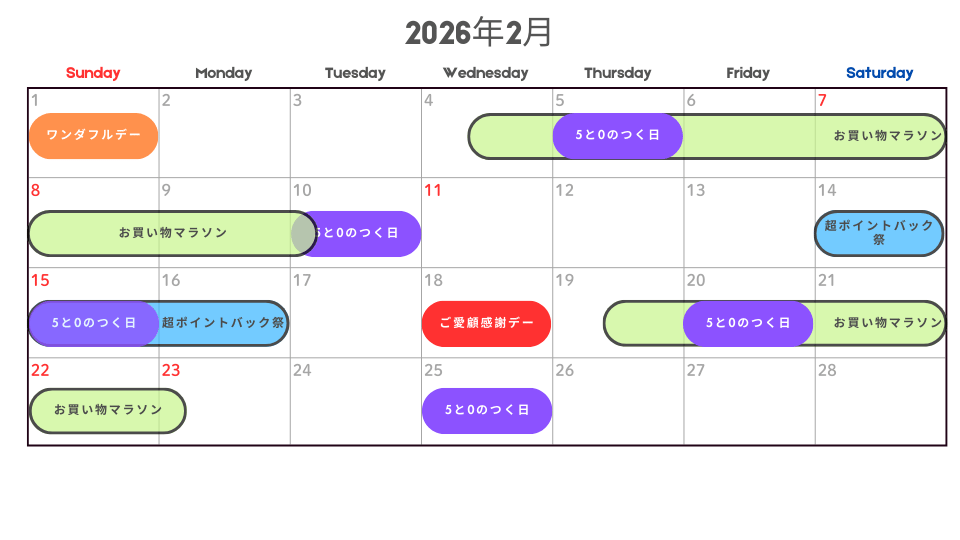 2026年2月の中でも、特にお得に買い物ができる日を解説します。