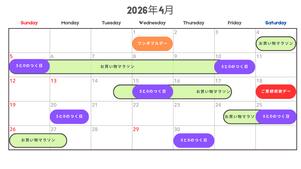 2026年4月の中でも、特にお得に買い物ができる日を解説します。