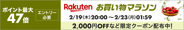 | 2月20日(金) | お買い物マラソン 5と0のつく日 | 最大11倍 4倍 | ||