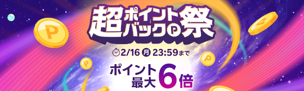 | 2月16日(月) | 超ポイントバック祭 | 最大6倍 | ||
