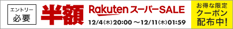 | 12月5日(金) | 楽天スーパーSALE 5と0のつく日 | 最大11倍 4倍 | ||