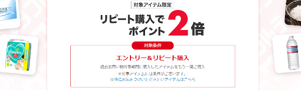 エントリー後に2ショップで購入するとポイント3倍(通常ポイント1倍+特典ポイント2倍)となります。
