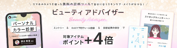 楽天会員で「ビューティアドバイザー」のプロフィールを登録後、診断を1つ以上体験と結果を設定した方限定で、対象アイテムのお買い物がポイント+4倍になります。