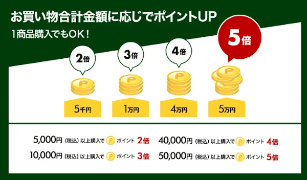 キャンペーン内容お買い物合計金額に応じてポイント最大5倍