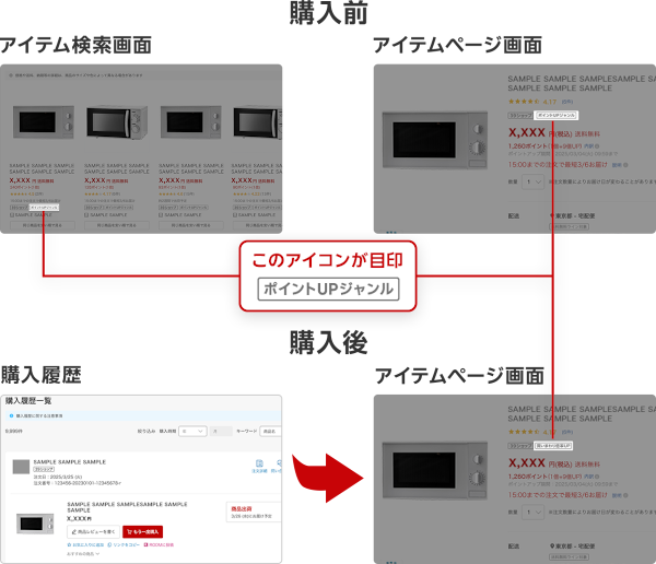 対象となるジャンルは、食品ジャンルと日用品ジャンルで ポイントUPジャンル のアイコンが目印です。
