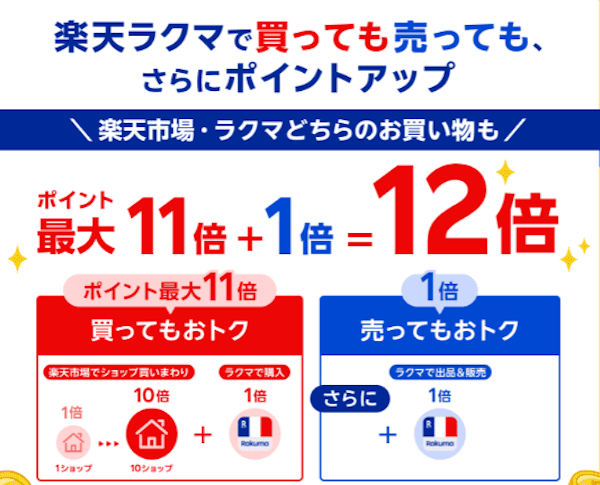 | キャンペーン内容 | ショップ買い回りでポイント最大10倍 (ラクマ購入でさらに+1倍) |